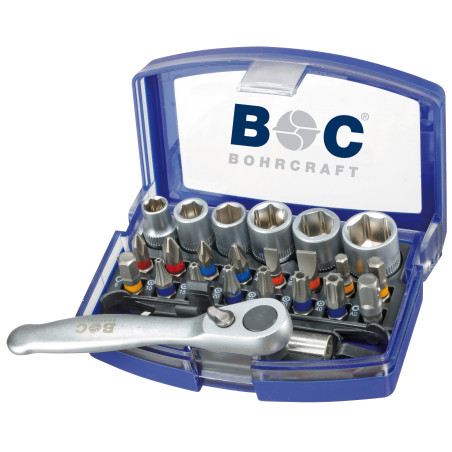 Knarre mit Bits 1/4" Schaft in Kunststoff-Box PB 24"