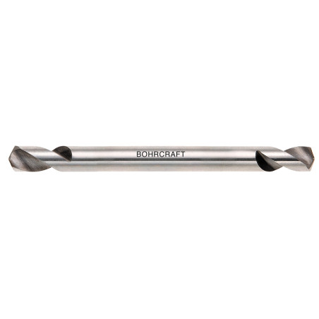 Doppelendbohrer aus Hochleistungs-Schnellarbeitsstahl, doppelseitig, rechtsschneidend, Werksnorm, Spitzenwinkel 118°, Kreuzanschliff nach DIN 1412 C, blank. Anwendung: Besonders geeignet zum Bohren mit Handbohrmaschinen in dünnwandigen Materialien wie Blech, Flacheisen und Profile. Profi-Ausführung.