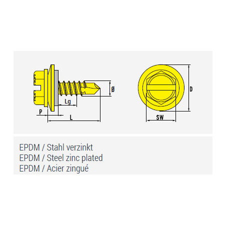 4,8x25 Stahl Sechskant-Bohrschraube mit angepresstem Bund und verzinkter Stahl-Scheibe mit EPDM-Dichtung