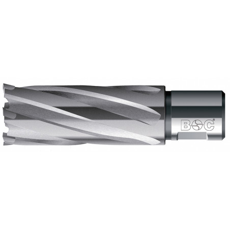 Kernbohrer aus Hartmetall, CBN-geschliffen, passend in allen Säulen- und Magnetständerbohrmaschinen mit Weldonschaft-Aufnahme (3/4"). Anwendung: Geeignet für Stahl (T-Träger, großformatige Bleche), rostfreien Stahl wie V2A und V4A, Bunt- und Leichtmetalle.