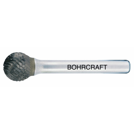 HM-Frässtift TiAlN Form D Kugel. Mit Kreuzverzahnung für hohen Materialabtrag bei Gusseisen, Stahl und Edelstahl. Zusätzliche TiAlN-Beschichtung für höhere Oberflächenhärte und höhere Warmhärtebeständigkeit wodurch die Standzeit deutlich erhöht wird. Lange Ausführung. Anwendung: Zum Kantenbrechen, Entgraten, Schweißnahtbearbeitung und Flächenbearbeitung.