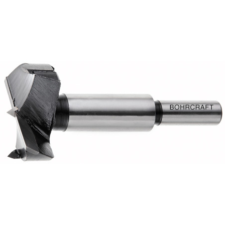HM-Kunstbohrer. Geschmiedeter Spezialstahl mit Zentrierspitze, 2 Hauptschneiden und 2 Vorschneider aus Hartmetall, zylindrischer Schaft, rechtsschneidend, Gesamtlänge 90 mm. Anwendung: Für saubere und maßhaltige Bohrungen mit Handbohrmaschinen in Hartholz, verleimte und Kunststoffbeschichtete Holzplatten, etc. Aufgrund der HM-Bestückung hohe Standzeit.