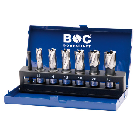Kernbohrer HSS m. Weldon. (3/4") in Metallkassette 7-tlg. 12 / 14 / 16 / 18 / 20 / 22 mm / KB 6 HSS