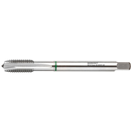 Industrie Maschinengewindebohrer Grünring, DIN 376 HSS-E Co 5%, Form B. Zum Schneiden von metrischen ISO-Gewinden DIN 13. Für Durchgangsgewinde. Für den universellen Einsatz in allgemeine Baustähle, Automatenstahl, unlegierten Einsatzstählen und Aluminiumlegierungen (kurzspanend) bis 1000 N/mm² Festigkeit.