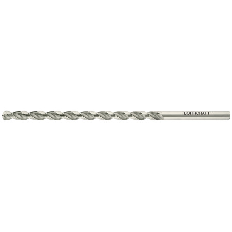 Mehrbereichsbohrer mit höherer Warmhärtebeständigkeit. Verstärkter Bohrerkern und parabolisch geformte Spannut zur besseren Spanabfuhr. Aus Hochleistungs-Schnellarbeitsstahl (5 % Kobalt), zylindrisch, extra-lange Ausführung, rechtsschneidend, Typ U-TL, Spitzenwinkel 130°, Kreuzanschliff nach DIN 1412 C, blank. Anwendung: Für unlegierte und legierte Stähle, hochchromlegierte Stähle wie V2A und V4A, rost- und säurebeständige Stähle (bis 1200 N/mm² Festigkeit). Ideal zum Bohren von mittel-, langspanenden und schwer zerspanbaren Werkstoffen.