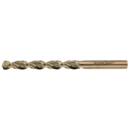 Mehrbereichsbohrer mit höherer Warmhärtebeständigkeit. Verstärkter Bohrerkern und parabolisch geformte Spannut zur besseren Spanabfuhr. Aus Hochleistungs-Schnellarbeitsstahl (5 % Kobalt), zylindrisch, kurze Ausführung, rechtsschneidend, Typ U-TL, Spitzenwinkel 130°, Kreuzanschliff nach DIN 1412 C, kupferfarbig. Anwendung: Für unlegierte und legierte Stähle, hochchromlegierte Stähle wie V2A und V4A, rost- und säurebeständige Stähle (bis 1200 N/mm² Festigkeit). Ideal zum Bohren von mittel-, langspanenden und schwer zerspanbaren Werkstoffen. Deckt in weiten Bereichen Typ N, H und W ab.