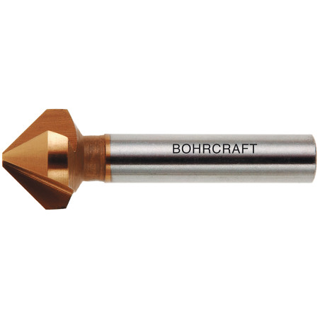Kegelsenker aus Hochleistungs-Schnellarbeitsstahl, zusätzlich mit TiN Beschichtung für höhere Standzeit. 3 Schneiden, 90° Senkwinkel. Anwendung: Zum grat- und ratterfreien Entgraten, Ansenken und Versenken in einem Arbeitsgang. Kleine Schnittgeschwindigkeit und ausreichend Kühlung sorgen für gute Ergebnisse.