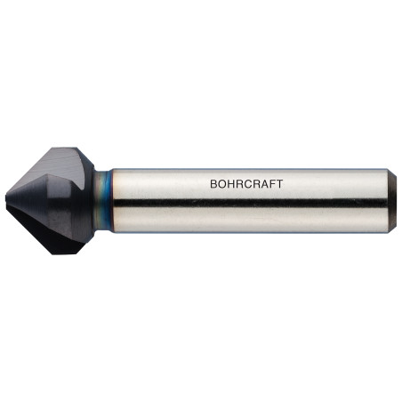 Kegelsenker aus Hochleistungs-Schnellarbeitsstahl, zusätzlich mit TiAlN Beschichtung für höhere Standzeit und Trockenzerspanung. 3 Schneiden, 90° Senkwinkel. Anwendung: Zum grat- und ratterfreien Entgraten, Ansenken und Versenken in einem Arbeitsgang. Kleine Schnittgeschwindigkeit und ausreichend Kühlung sorgen für gute Ergebnisse.