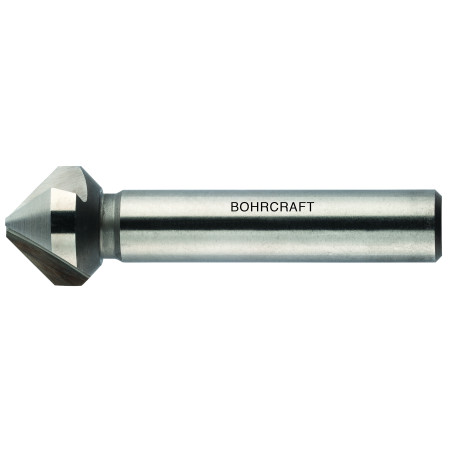 Kegelsenker aus Pulvermetall (PM), 3 Schneiden, 90° Senkwinkel. Anwendung: Für VA-Stähle (V2A, V4A), Titan, Titanlegierungen und Hardox 400. Zum grat- und ratterfreien Entgraten, Ansenken und Versenken in einem Arbeitsgang. Kleine Schnittgeschwindigkeit und ausreichend Kühlung sorgen für gute Ergebnisse.