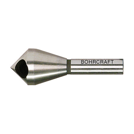 Kegel- u. Entgratsenker mit Querloch aus Hochleistungs-Schnellarbeitsstahl, Senkwinkel 90°, rechtsschneidend, zylindrischer Schaft. Anwendung: Zum ratterfreien Entgraten von Bohrungen.