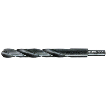 Spiralbohrer mit reduziertem Schaft (bis 16 mm auf 10 mm, darüber 13 mm) aus Hochleistungs-Schnellarbeitsstahl, rollgewalzt, dadurch sehr stabil, zylindrisch, kurze Ausführung, rechtsschneidend, Typ N, Spitzenwinkel 118°, Kegelmantelanschliff. Anwendung: Für Bohrarbeiten in Stahl, Sintereisen, kurzspanende Aluminiumlegierungen, Kupfer, Messing, Kunststoffe.