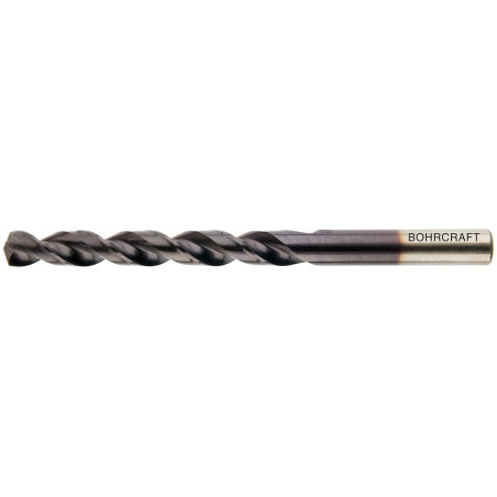 Spiralbohrer für VA mit verstärktem Bohrerkern und speziell geformter Spannut zur besseren Spanabfuhr, zusätzlich mit TiAlN Beschichtung für höhere Standzeit. Aus Hochleistungs-Schnellarbeitsstahl (5 % Kobalt), zylindrisch, kurze Ausführung, rechtsschneidend, Typ VA/Ti, Spitzenwinkel 130°, Kreuzanschliff nach DIN 1412 C. Anwendung: Für Stahl und Stahlguss legiert und unlegiert (bis 1.200 N/mm² Festigkeit), Titan und Titanlegierungen, rost- und säurebeständigen Stahl, V2A und V4A Stahl, Warm- und Kaltarbeitsstahl und Wälzlagerstahl.